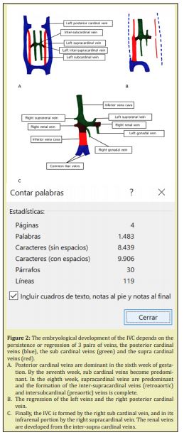 Congenital anomalies in the inferior vena cava (IVC) are rare, with agenesis being the less frequent manifestation, with an approximate incidence of 0.005% to 1% in the general population.1,2 However, in young patients with a deep vein thrombosis diagnosis, the incidence increases to 5%.5,6 Anomalies in the development of the inferior vena cava. The embryological development of the inferior vena cava takes places between the sixth and eight week of gestation, and depends on the persistence or regression of 3 pairs of veins: the posterior cardinal veins, the sub cardinal veins and the supra-cardinal vein (Figure 2).1,7-10 The type of anomaly varies according to the moment of embryological development that presents an alteration, and so the presence of a left IVC or double IVC is owed to the persistence of the left supra-cardinal vein, accompanied or not by the atrophy of the right supra-cardinal vein.7,9 While the anomalies of the renal vein are caused by the persistence of the inter-supra cardinal associated or not to the regression of the inter-sub cardinal vein, manifesting during adult life as a retro aortic left renal vein or a circumarctic left renal vein.7,9 Regarding the absence of IVC, there is no clarity as to its etiology. Some authors have proposed a secondary origin of the thrombosis of the intrauterine IVC, resulting in its agenesis and the redistribution of the venous return into four different paths: the deep collaterals (paravertebral and periutheral), middle collaterals (gonadal), superficial collaterals (epigastric, internal mammary and subclavian) and via the portal system through the hemorrhoidal veins.1