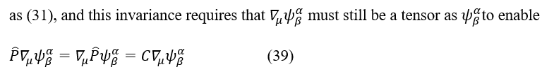 for which reason the covariant derivative of a tensor ∇μψβα must remain to be a tensor as the original tensor ψβα, and it leads to the existence of connection Γμνλ or Γμλν .