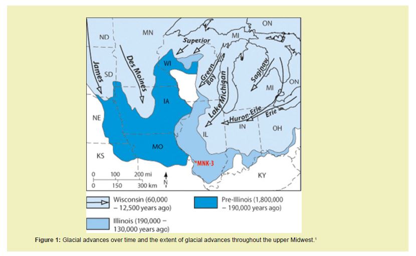 Landscape formation was glacially driven by ice advances over 12,000 years ago.1 Ice advanced and retreated and left behind a relatively young landscape compared to landscapes eroded by water and wind over millennia. The young landscapes can be identified by the colored areas in Figure 1 which show portions of the Midwestern USA that were under ice and where glacial till and other glacially derived soil was left behind. Because the landscape is relatively young, many wetlands and lakes were created as glaciers retreated leaving behind ice blocks which may have been covered or partially impacted with sediment by subsequent ice advances. Eventually, the ice blocks melted leaving a depression on the landscape. Large ice blocks left behind lakes that today offer recreation to many Midwestern states, particularly Minnesota, Wisconsin, and Michigan. However, many more small ice blocks created small ponds and wetlands scattered from North Dakota to Ohio Figure 1.1 The small wetlands were often hydrologically isolated and only overflowed into a large contributing drainage area under extreme precipitation.2,3 Today, Midwestern USA has some of the most altered hydrology found anywhere in the world, with deepen natural channels, machine dug ditches and billions of linear meters of pipe buried typically 1 to 2-m below ground. Some of the pipe is over a century old constructed of clay tile, but most of the pipe is a black flexible, corrugated, perforated plastic tube with a sediment sock to filter excess silt from entering the buried drainage system