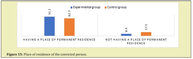 Another factor that is mentioned among the positive or negative indicators for the convicts is the fact of having a place of permanent residence. In the compared populations, the convicts, in the vast majority of cases, had a place of residence where they could return to after leaving the prison facility. In the experimental group it was 91% and in the control group it was 83% of the convicted.