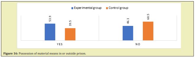 The majority of convicts from the experimental group (54%) had some financial resources that they accumulated during their time in prison (paid for work, money sent by relatives or friends). In the control group, the percentage was significantly lower and amounted to 46% (Figure 16).