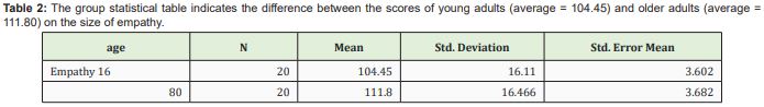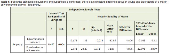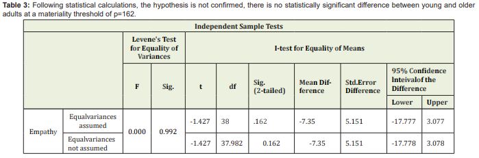 Hypothesis 1: It is assumed that there is a significant differences between young and older adults in terms of empathy.