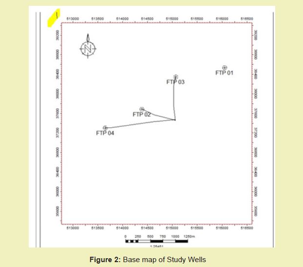The data acquired from the “FTP” field in the Niger Delta area, Nigeria are Well log data which includes (The gamma ray), Well header and deviation data for four wells with use of petrel software for the interpretation Figure 2. This software was used to interpret and calculate the volume of hydrocarbon in “FTP” field.